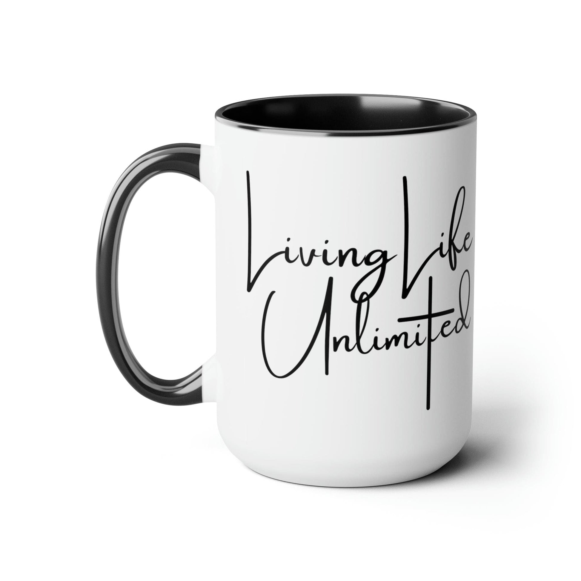 Living Life Unlimited - Inspirational Motivation - Black Ceramic Coffee Mug. Warm-up with a nice cuppa out of this two-tone accent ceramic coffee mug. This mug is perfect for your morning cup of coffee, tea, hot cocoa, or any other hot beverage. It's also great for cold beverages! The ceramic mug is microwave and dishwasher safe. It's BPA and Lead-free, and made of durable ceramic in 15-ounce size.