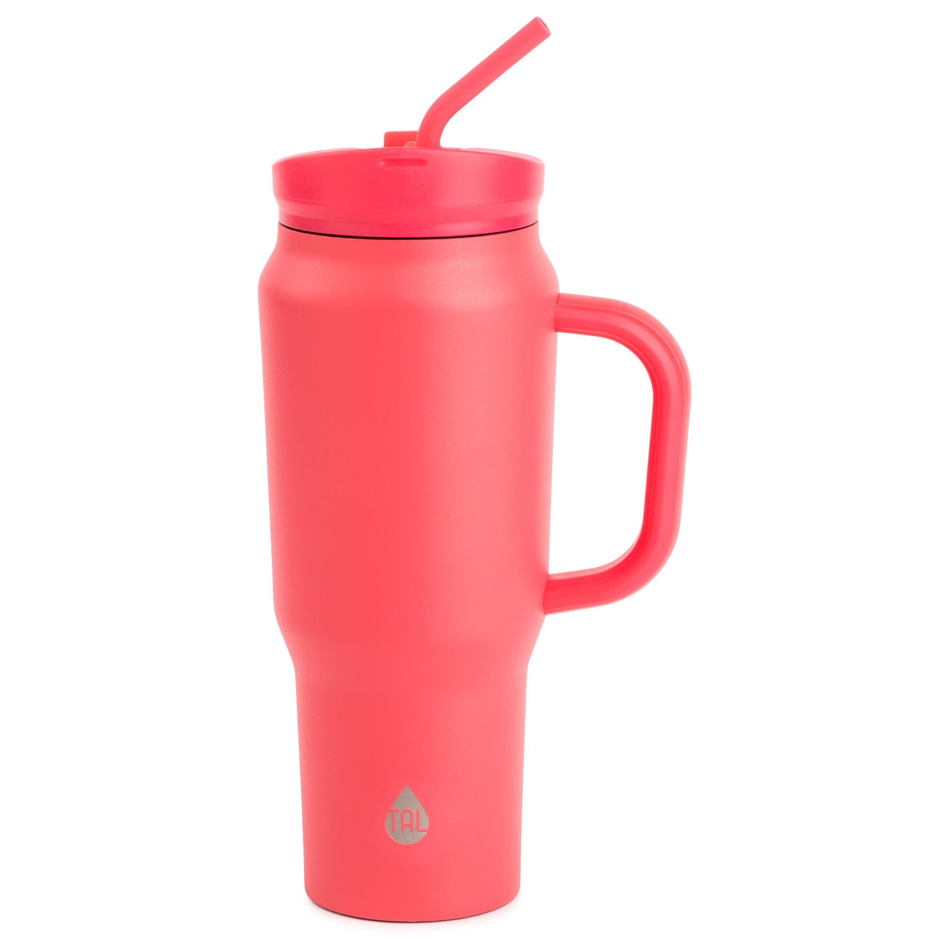 TAL Stainless Steel Basin Travel Mug 30 fl oz, Pink is the perfect hydration solution for life on-the-go. The Basin has a silicone straw and fits in most cup holders! Whether you're commuting to work, running errands around town, or just need a convenient way to stay hydrated throughout the day, this mug has got you covered. Crafted from high-quality materials, this mug is built to last and can withstand even the toughest of daily routines. The large 30 fluid ounce capacity means that you can stay hydrated for longer, while the convenient silicone straw makes it easy to take a sip on-the-go without having to unscrew the lid. This mug is the perfect companion for your daily commute or road trip. Simply pop it in your car's cup holder and you're ready to go. For care and use, please hand wash in warm water with a soft sponge and dish soap.
