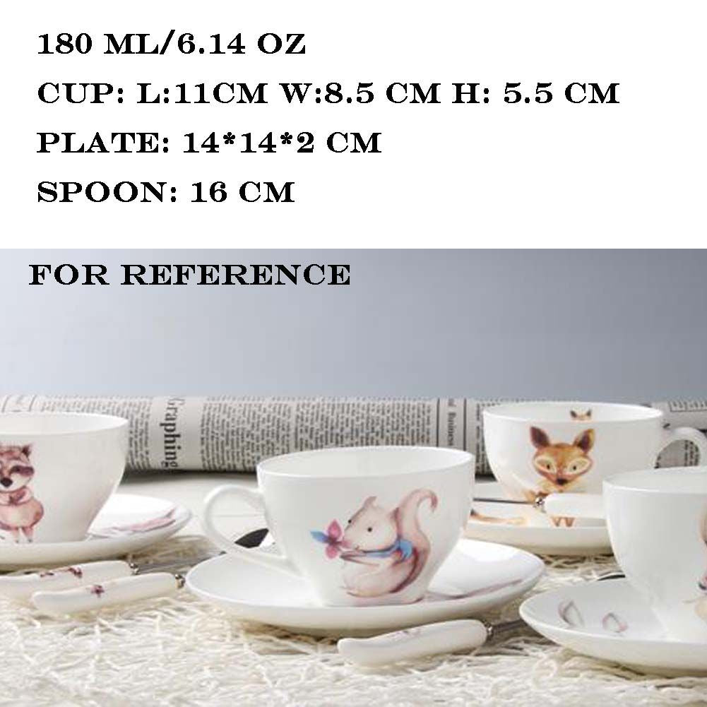 Cute Tea Cup and Saucer Set Spoon Coffee Cup Set Porcelain Coffee Mug 6.1OZ