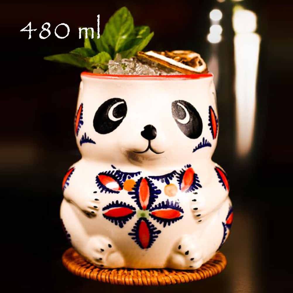 Cute Panda Hawaiian Cocktail Cup Animal Ceramic Mug Summer Drinking Cup, 480ml