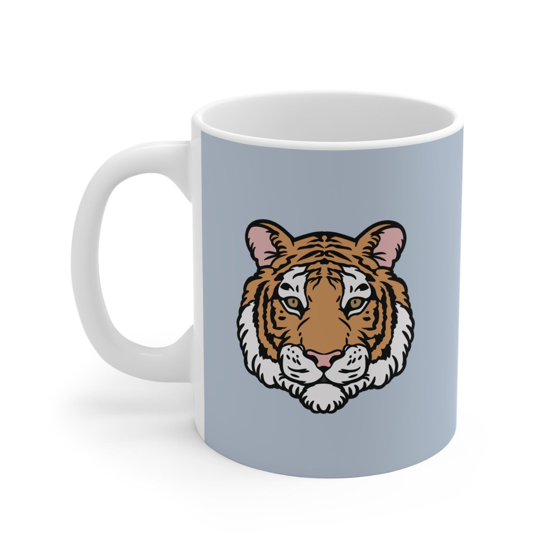 Tiger Logo Blue Mug - the perfect companion for your morning cup of coffee, tea or hot chocolate. Crafted from high-quality, durable ceramic, this classic white mug is designed to withstand daily use and is sure to become your go-to mug for all your favorite hot beverages. With its sleek and stylish design, this mug is perfect for both home and office use.Â