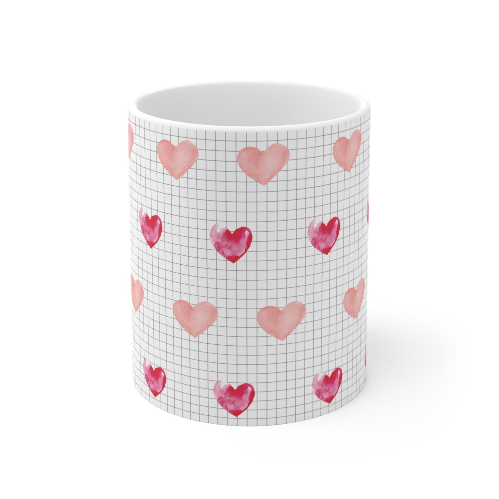 Floating Hearts Logo Mug - the perfect companion for your morning cup of coffee, tea or hot chocolate. Crafted from high-quality, durable ceramic, this classic white mug is designed to withstand daily use and is sure to become your go-to mug for all your favorite hot beverages. With its sleek and stylish design, this mug is perfect for both home and office use.Â