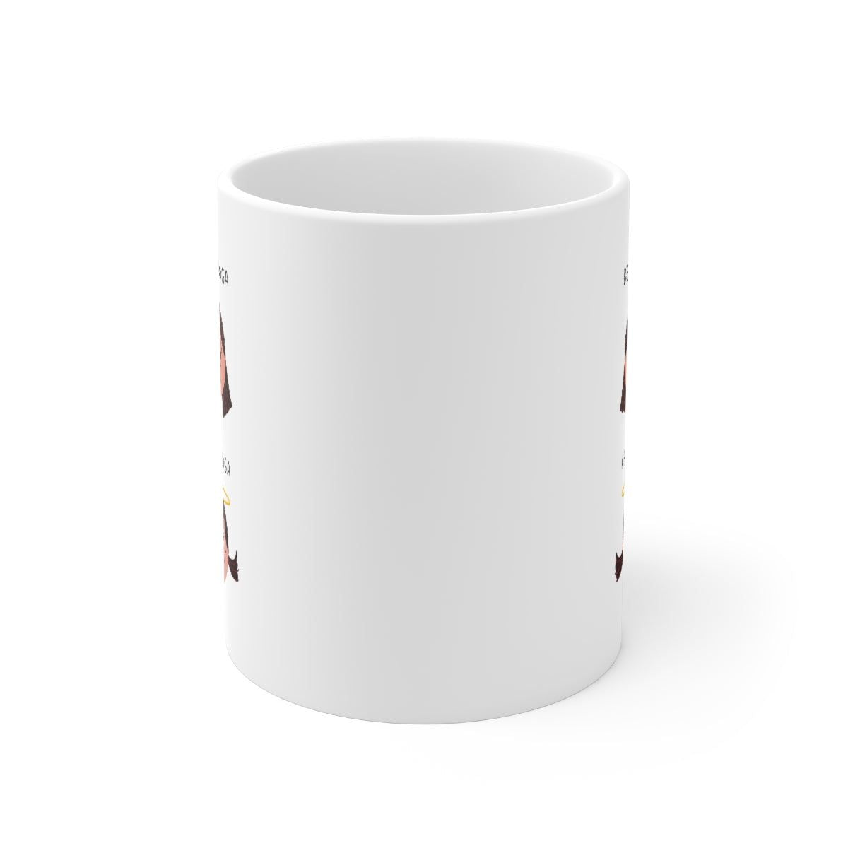 Before and After Yoga Novelty Mug. It's microwave & dishwasher-safe and made of white; durable ceramic in an 11-ounce size. The perfect gift for the coffee; tea; and chocolate lovers.
